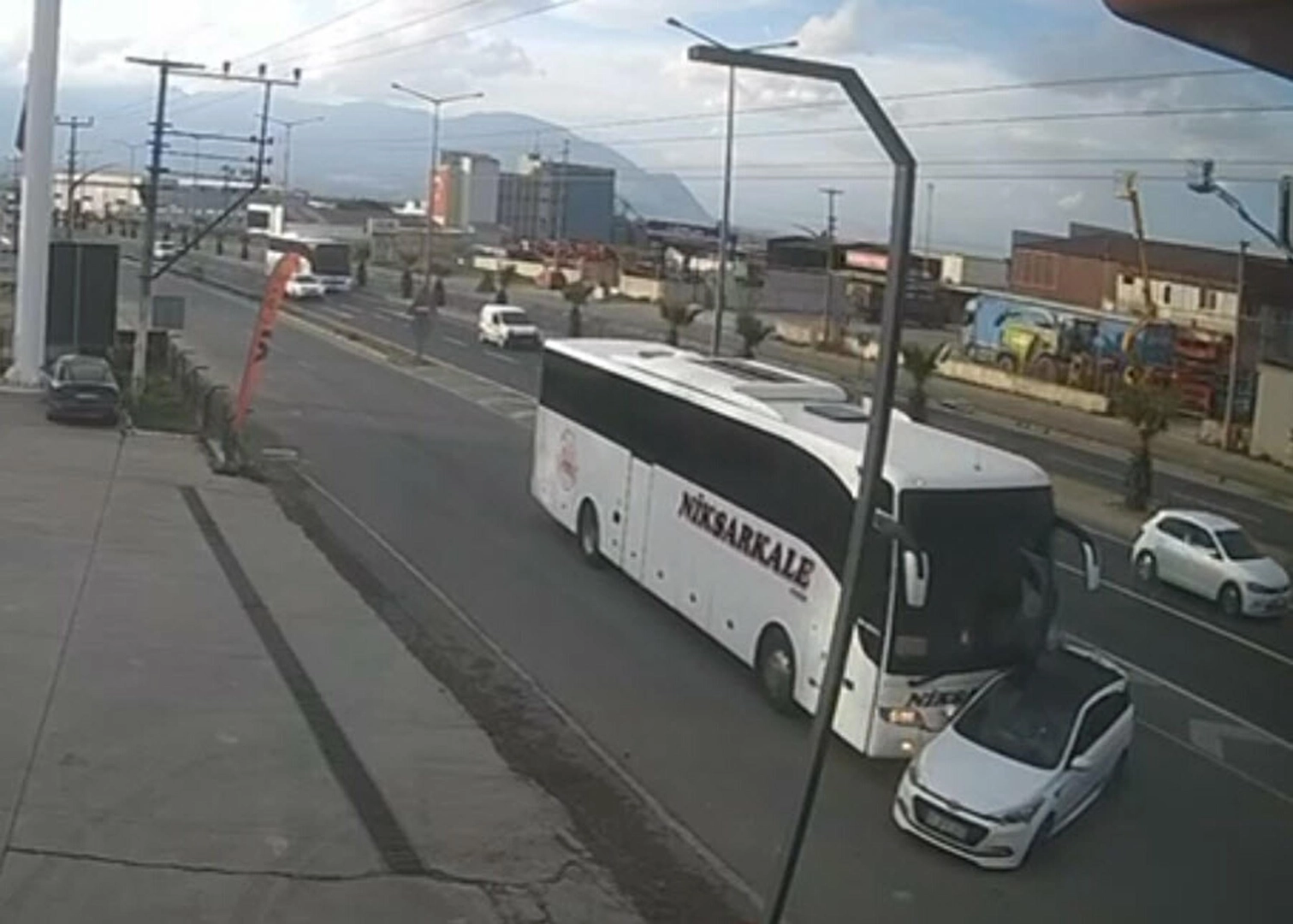 Doğan ÇİZMECİ/TURGUTLU, (Manisa), (DHA)- MANİSA'nın Turgutlu ilçesinde yolcu otobüsünün çarptığı otomobildeki 1'i çocuk, 3 kişi yaralandı. Kaza bir iş yerinin güvenlik kamerasına yansıdı.
