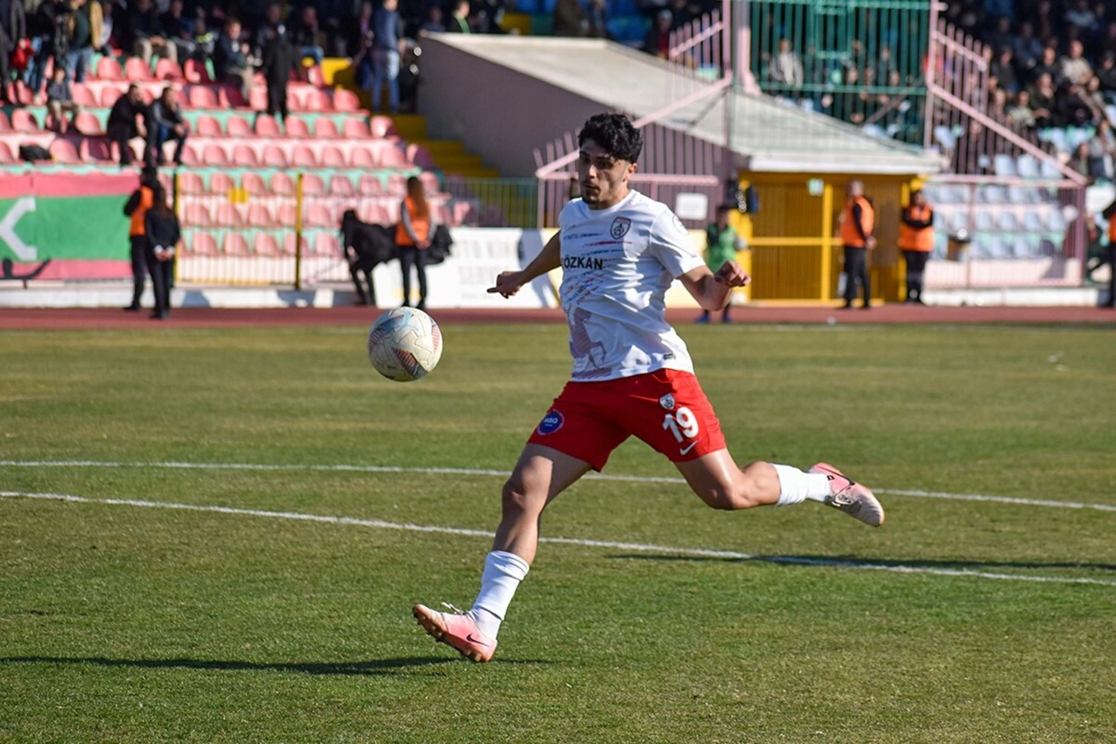 Mustafa KÖPRÜLÜ / İZMİR, (DHA)- 2'nci Lig Beyaz Grup'ta geride bıraktığımız sezon Play-Off'lara kalıp yarı finalde elenen Altınordu'da gurbetçi santrfor Koray Dağ, bir kez bile gol sevinci yaşayamadı. İzmir temsilcisinin ara transfer döneminde Türkspor Dortmund'dan kadrosuna kattığı 22 yaşındaki forvet oyuncusu kırmızı-lacivertli formayla 2'si Play-Off olmak üzere 17 karşılaşmada görev yaptı. Bu maçların 5'inde ilk 11'de şans bulan Koray, toplam 557 dakika oyunda kalırken, skora katkı sağlayamadı. Altınordu ile 2027 yılına kadar sözleşmesi bulunan genç futbolcu sol kanatta da oynayabiliyor.(FOTOĞRAFLI)