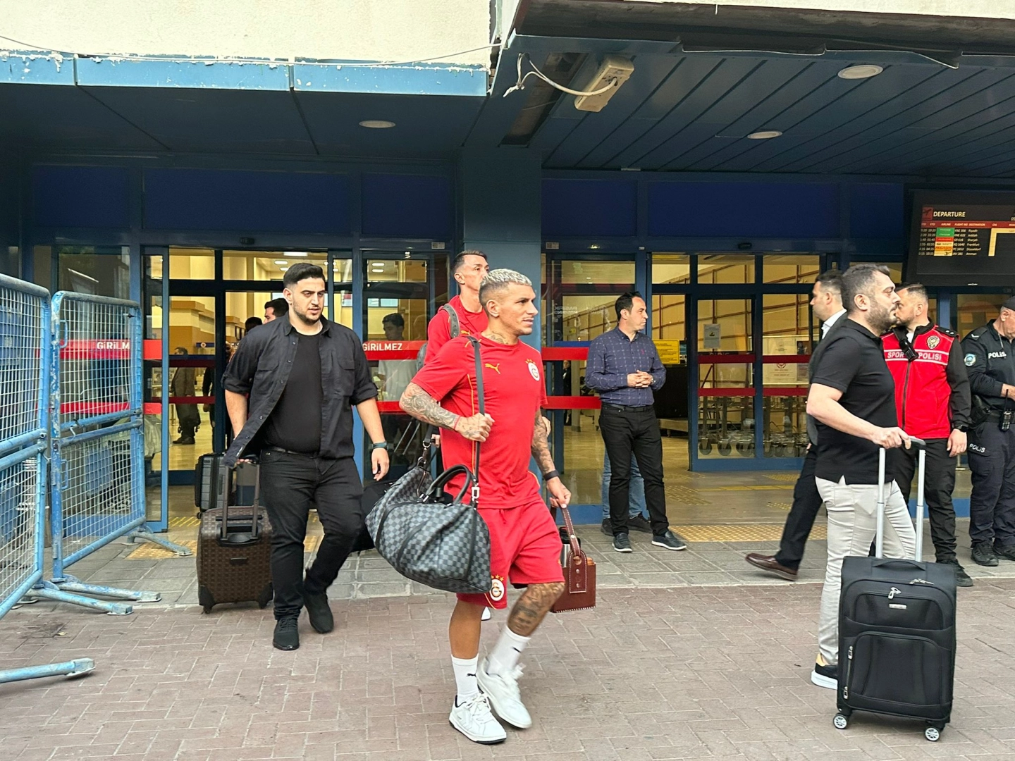 Nurgül GÜNAYDIN-Efnan DEMİREREN/TRABZON, (DHA) – GALATASARAY kafilesi, Süper Lig'in 35’inci haftasında Trabzonspor'a konuk olacağı maç için havayoluyla Trabzon’a geldi.Süper Lig’in 35’inci haftasında Trabzonspor ile karşılaşmaya hazırlanan Galatasaray, yarın oynanacak müsabaka için havayoluyla kente geldi. Trabzon Havalimanı’na saat 18.00’de iniş yapan Galatasaray kafilesi, dış hatlar gelen yolcu salonundan çıkış yaptı. Galatasaray Teknik Direktörü Okan Buruk, havalimanı çıkışında kendilerini bekleyen az sayıdaki taraftarla hatıra fotoğrafı çektirdi. Daha sonra sarı-kırmızılılar, kendilerini bekleyen otobüse binerek konaklayacakları otele hareket etti.Trabzonspor ile Galatasaray, yarın saat 19.00'da Papara Park Stadyumu’nda karşılaşacak.Galatasaray'ın 30 kişiden oluşan Trabzonspor maçı kamp kadrosunda ise şu oyuncular yer aldı: "Fernando Muslera, İsmail Jakobs, Eyüp Aydın, Davinson Sanchez, Roland Sallai, Kerem Demirbay, Dries Mertens, Yunus Akgün, Eren Elmalı, Berkan Kutlu, Günay Güvenç, Gabriel Sara, Ahmed Kutucu, Kaan Ayhan, Carlos Cuesta, Przemyslaw Frankowski, Yusuf Demir, Gökdeniz Gürbüz, Lucaz Torreira, Abdülkerim Bardakçı, Victor Osimhen, Jankat Yılmaz, Barış Alper Yılmaz, Berat Luş, Enes Emre Büyük, Alvaro Morata, Efe Akman, Metehan Baltacı, Arda Ünyay, Mario Lemina"(FOTOĞRAFLI)