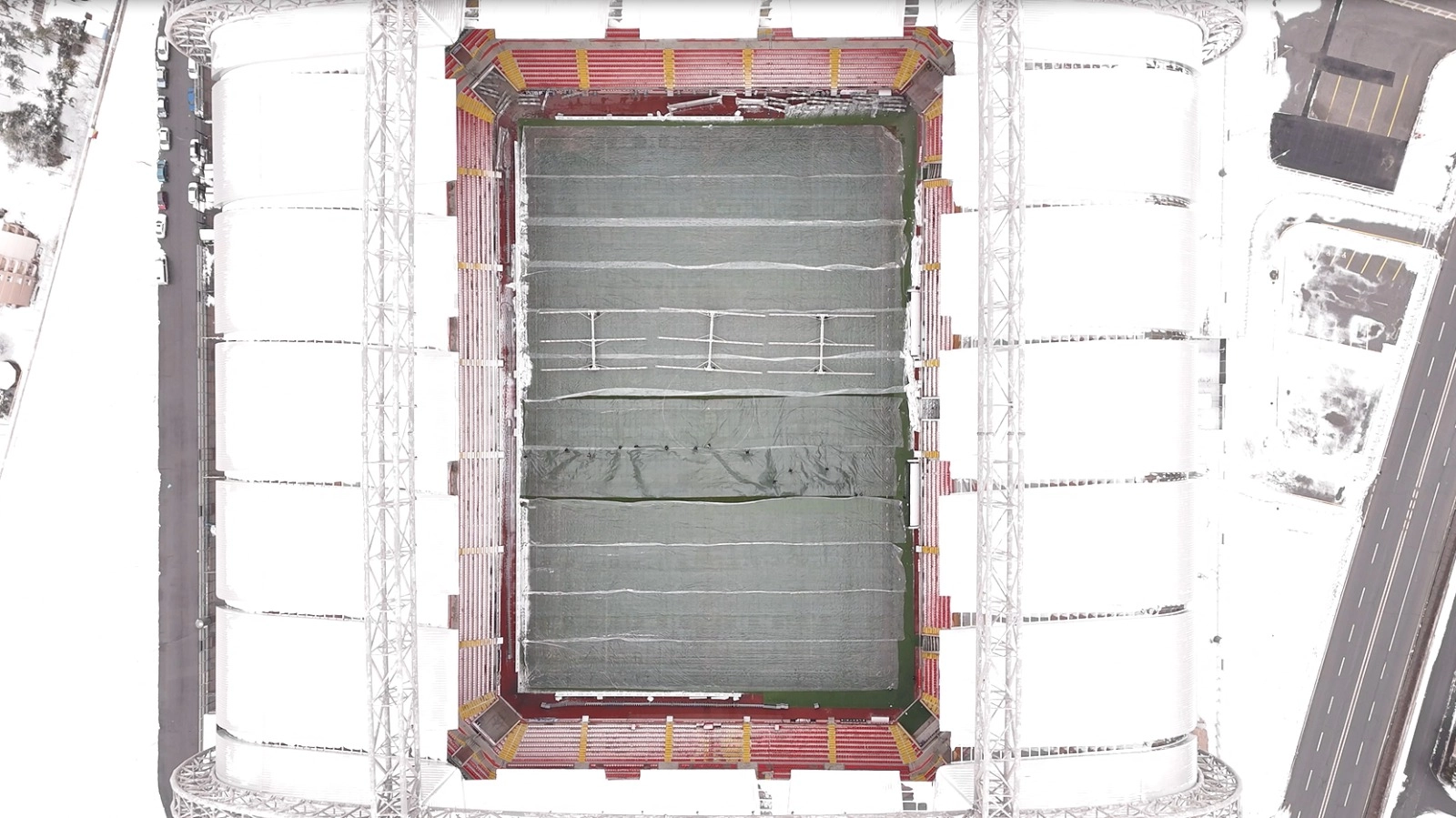 Hava sıcaklığı eksi 17 dereceyi gördü; Süper Lig ekibinin stadyumunun zeminine naylon örtü serildi / Ek fotoğraflar