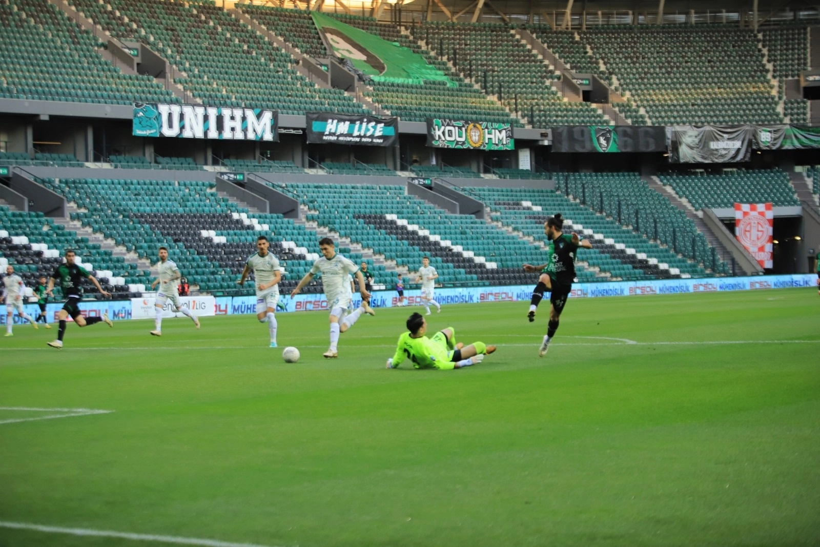 STAT: Yıldız Entegre Kocaeli HAKEMLER: Davut Dakul Çelik, Sezgin Çınar, Mehmet KapluhanKOCAELİSPOR: Gökhan Değirmenci - Mehmet Yılmaz, Yusuf Abdioğlu, Burak Öksüz (Dk. 46 Vukovic), Duhan Aksu, Emir Ortakaya, Candeias (Dk. 84 Oğuz Ceylan), Yusuf Cihat Çelik, Amaral (Dk.79 Mesut Can Tunalı), Beridze(Dk. 64 Barış Alıcı), Ramil Sheidaev (Dk. 79 Cem Ekinci) GİRESUNSPOR: Gökhan Cörüt - Kadir Seven, Arda Kılıç (Dk. 86 Muhammed Miraç Çakıroğlu), Anıl Yiğit Çınar, Mehmet Keskin, Faruk Can Genç, Talha Ülvan, Enishan Ceylan (Dk.86 Furkan Arda Kabaca), Furkan Kütük (Dk. 90 2 Berkay Özyazıcı), Şahin Dik (Dk. 86 Emre Nizam), Kasım Alperen Köşker (Dk. 46 Ali Emirhan Akçay)GOLLER: Dk. 8 Ramil Sheidaev, Dk.79 Candeias (Kocaelispor)SARI KARTLAR: Burak Öksüz, Ramil Sheidaev, Barış Alıcı (Kocaelispor), Faruk Can Genç (Giresunspor) TFF 1'inci Lig'in 30'uncu haftasında Kocaelispor, evinde konuk ettiği Giresunspor'u 2-0 mağlup etti. Yeşil-siyahlı ekibin Göztepe maçında yaşanan olaylar nedeniyle PFDK'dan 1 maç seyircisiz oynama cezası nedeniyle mücadele seyircisiz oynandı.8'inci dakikada Kocaelispor öne geçti. Yusuf Cihat Çelik'in ara pasıyla topla buluşan Amaral, soldan ceza sahası içine girdi ve pasını Sheidaev'e verdi. Bu oyuncunun vuruşunda top ağlara gitti: 1-0.36'ncı dakikada Candeias'ın pasında topla buluşan Beridze'nin yakın mesafeden yaptığı vuruşta top auta gitti.Maçın ilk yarısı Kocaelispor'un 1-0'lık üstünlüğüyle sona erdi. 76'ncı dakikada Kocaelispor farkı 2'ye çıkarttı. Sol kanattan gelişen atakta Barış Alıcı'nın pasıyla topla buluşan Candeias, sol ayağıyla yaptığı vuruşla topu ağlara gönderdi: 2-0.Maç, Kocaelispor'un 2-0'lık üstünlüğüyle sona erdi.(FOTOĞRAFLI)