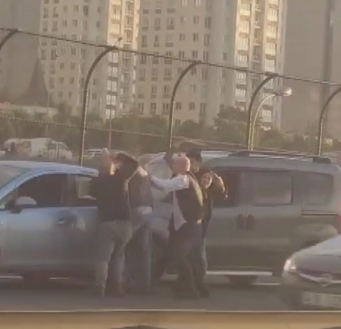 İSTANBUL, (DHA)- AVCILAR'da trafikte iki sürücü arasında başlayan tartışma kavgaya dönüştü. Hafif ticari araç sürücüsü ve yanındakiler otomobil sürücüsüne sopalarla saldırdıktan sonra olay yerinden hızla uzaklaştı. O anlar cep telefonu kamerasıyla kaydedildi. Avcılar Ispartakule yakınlarında trafikte seyir halindeki hafif ticari araç sürücüsüyle otomobil sürücüsü arasında yol verme tartışması çıktı. Araçlarını yol kenarına çekip inen sürücüler tekme tokat kavga etmeye başladı. Hafif ticari araç sürücüsü ve yanındakiler otomobil sürücüsüne dakikalarca sopayla saldırdı. Çevredekiler araya girerek kavgayı ayırmaya çalıştı. Bir süre sonra otomobil sürücüsü aldığı darbeler nedeniyle yere yığıldı. Hafif ticari araç sürücüsü ise aracına binerek olay yerinden hızla uzaklaştı. O anları trafikteki diğer sürücüler cep telefonuyla kaydetti.