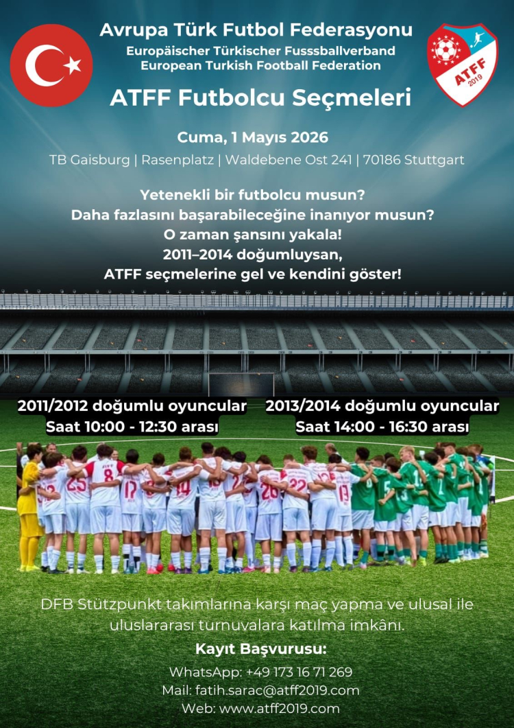 ATFF, Avrupa’daki Türk genç yetenekleri keşfedip Türkiye’ye kazandırmak için DFB ile iş birliği yaptı. 1 Mayıs 2026’da Stuttgart’ta yapılacak seçmelere 2011-2014 doğumlu futbolcular katılacak. Ayhan Yıldız, projenin milli takıma katkı sağlayacağını vurguladı.