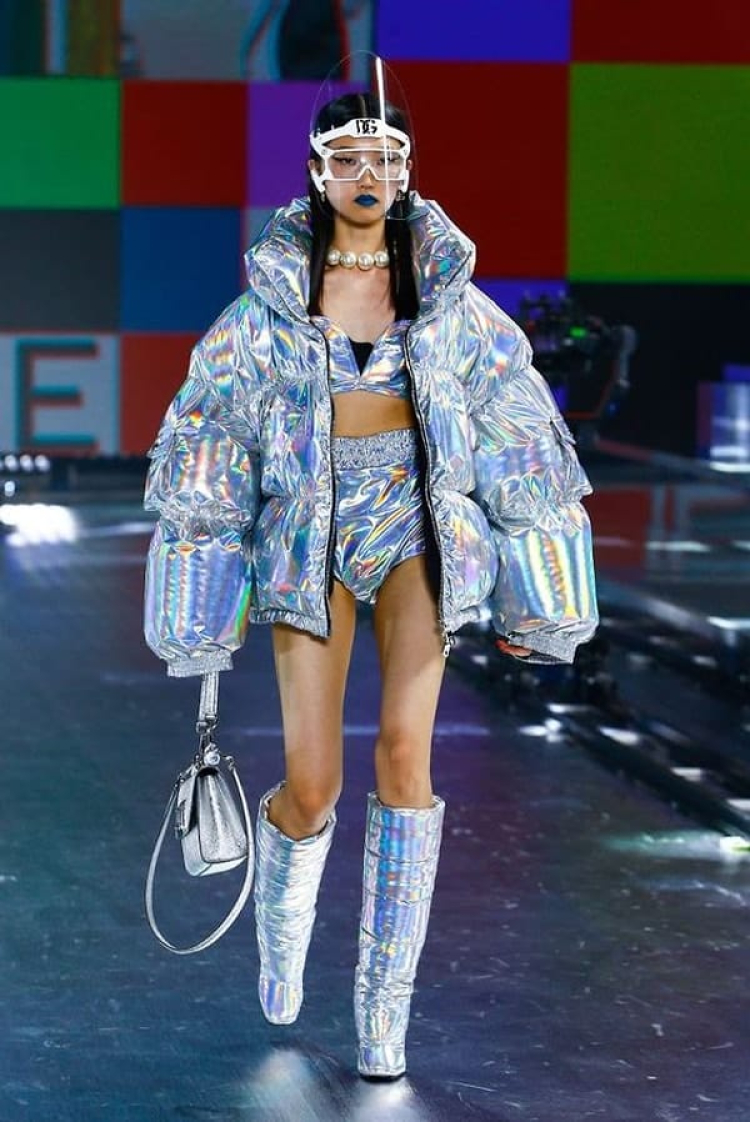 Dolce & Gabbana’nın çiçek motifleriyle bir araya getirdiği uzay temalı baskılar ve Daks, Elie Saab, Shoji ve Vivetta gibi markalarsa, uzay çağı trendine farklı bir açıdan ayak uydurup koleksiyonlar yerine makyaj tercihlerinde metalik tonlar ve simlerle bu akıma öncülük edenlerden.